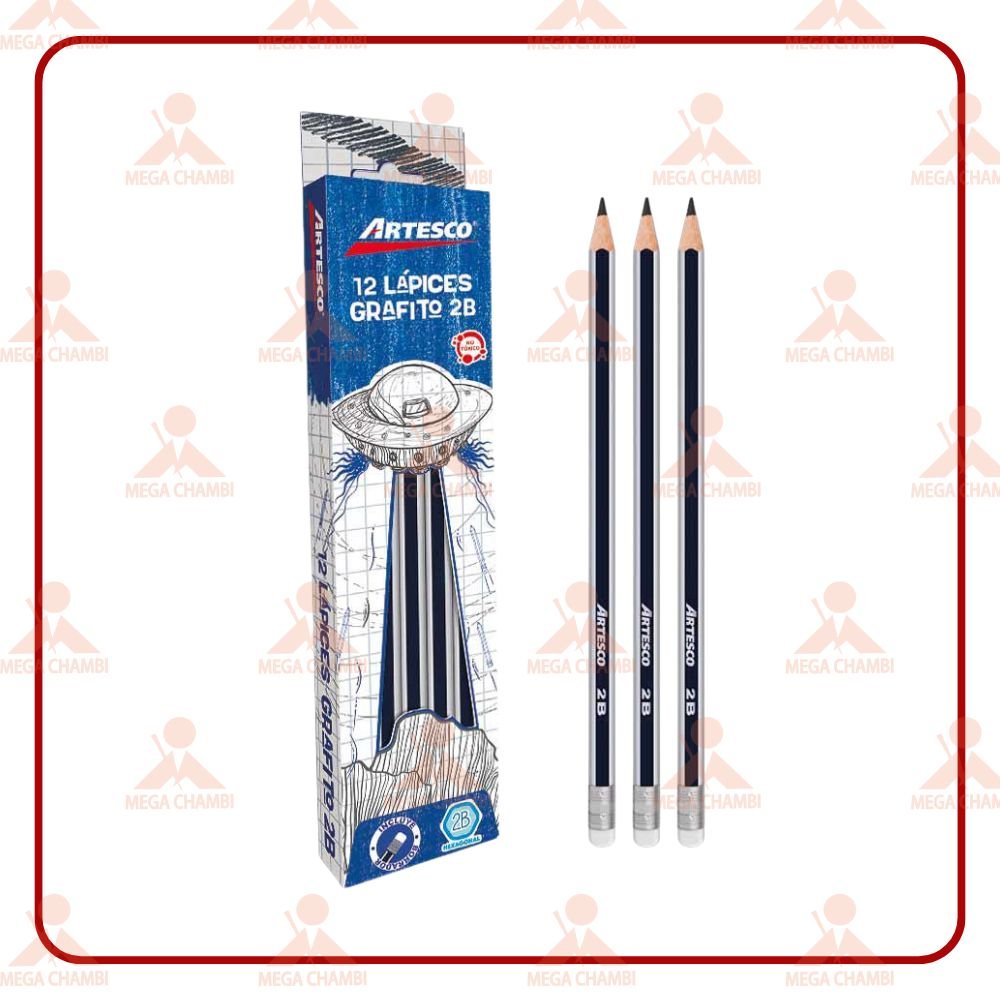Lápiz de grafito ARTESCO 2B con cuerpo hexagonal para mejor agarre. Perfecto para dibujo, escritura y sombreado.