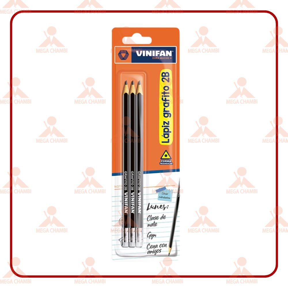 Lápiz VINIFAN 2B con diseño triangular ergonómico que facilita la escritura prolongada. Ideal para colegios.