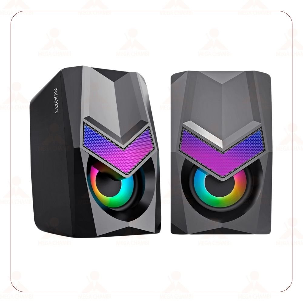 El Micronics Avanty S321 RGB ofrece un audio claro en formato 2.0, ideal para computadoras y espacios de trabajo. Su iluminación RGB le da un aspecto atractivo y juvenil.